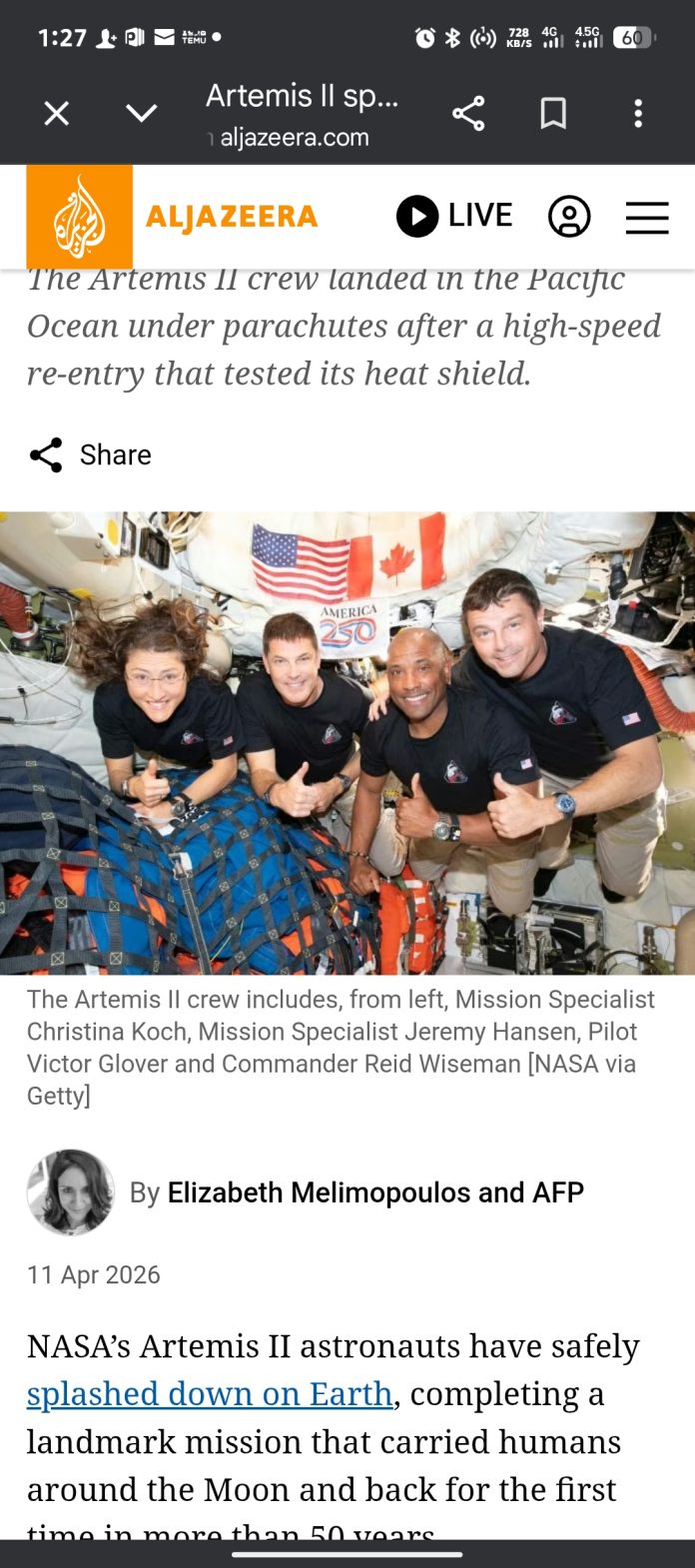 The four-member astronaut team completed their lunar mission and returned safely to Earth after spending over a week in space conducting scientific experiments, lunar surface observations, and technology demonstrations aimed at advancing future deep-space exploration.